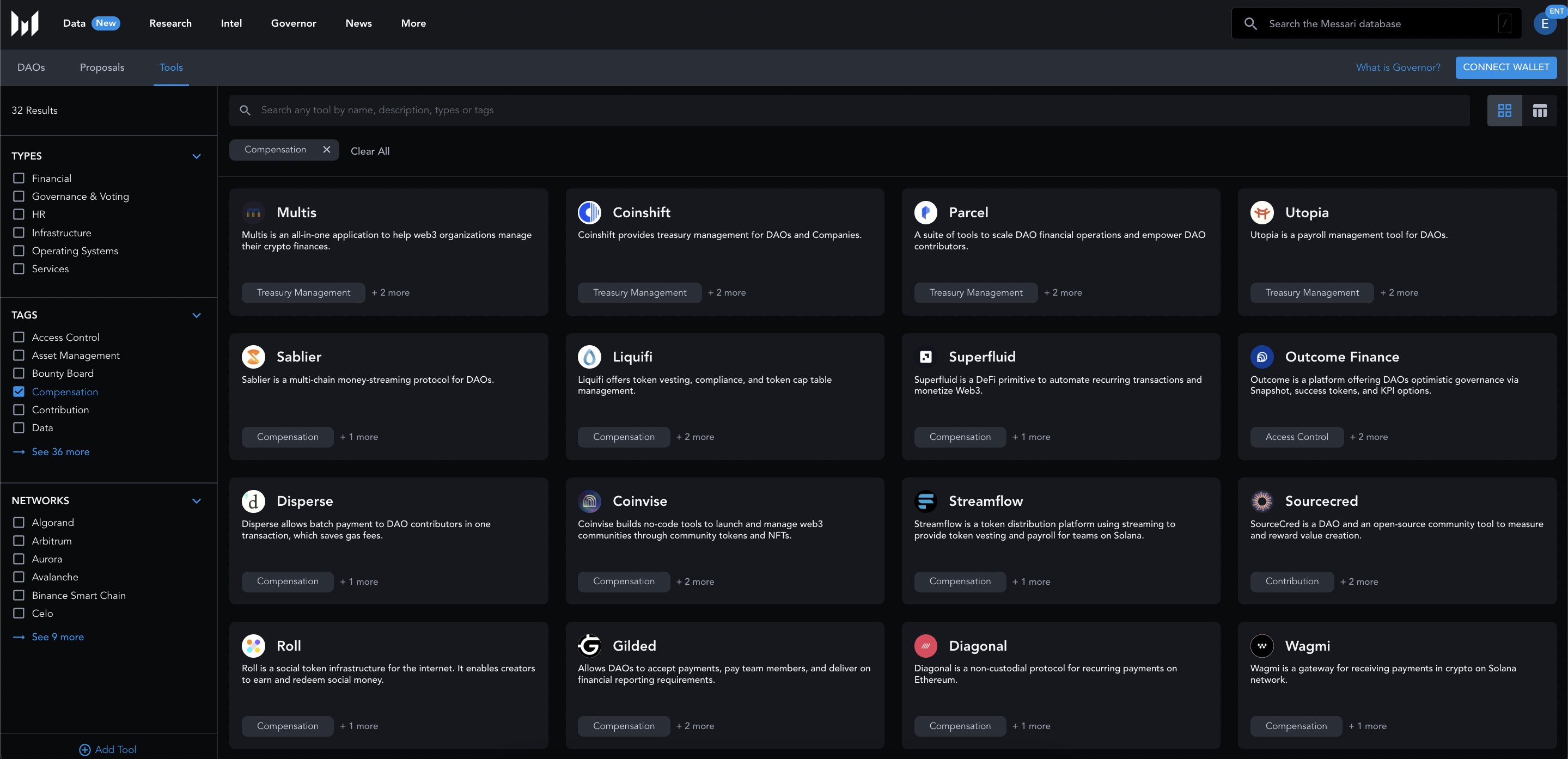 Messari On Twitter 1 Do You Know The 32 Tools Daos Are Using To Compensate Their Contributors And Fund Bounties You Can Get An Overview Of Web3 Compensation Tools In Card View Grid