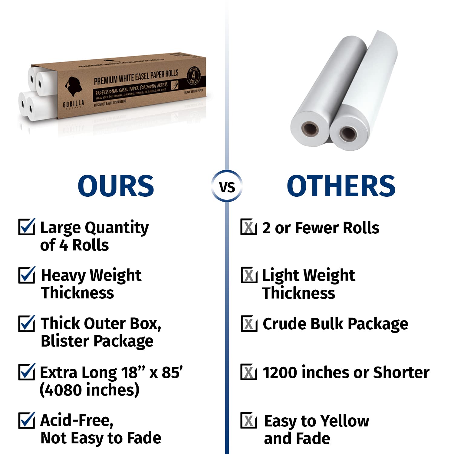 Amazon Com 4 Gorilla Supply White Kraft Arts And Crafts Paper Rolls 4pack Of 18 X 85 4080inch Ideal For Paints Wall Art Easel Paper Fadeless Bulletin Board Paper Gift Wrapping Paper